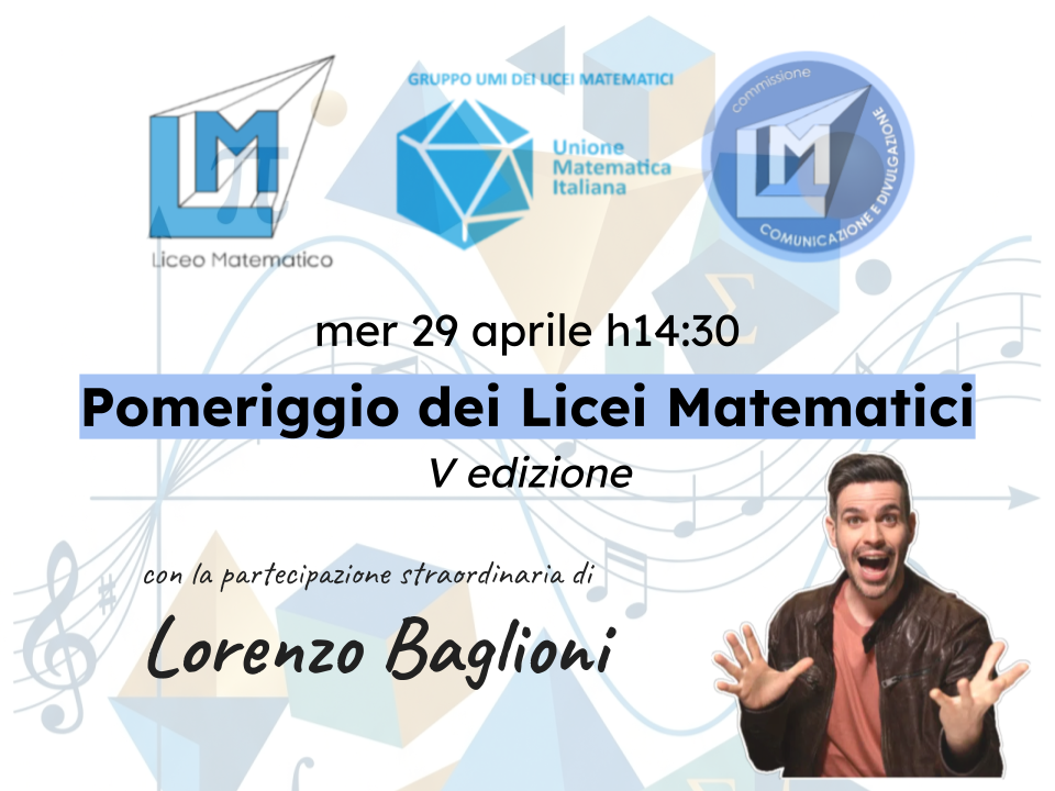 Mercoledì 29 aprile, a partire dalle ore 14:30, si svolgerà online la V edizione del Pomeriggio dei Licei Matematici. Solo le scuole aderenti al progetto riceveranno via email il link per partecipare.