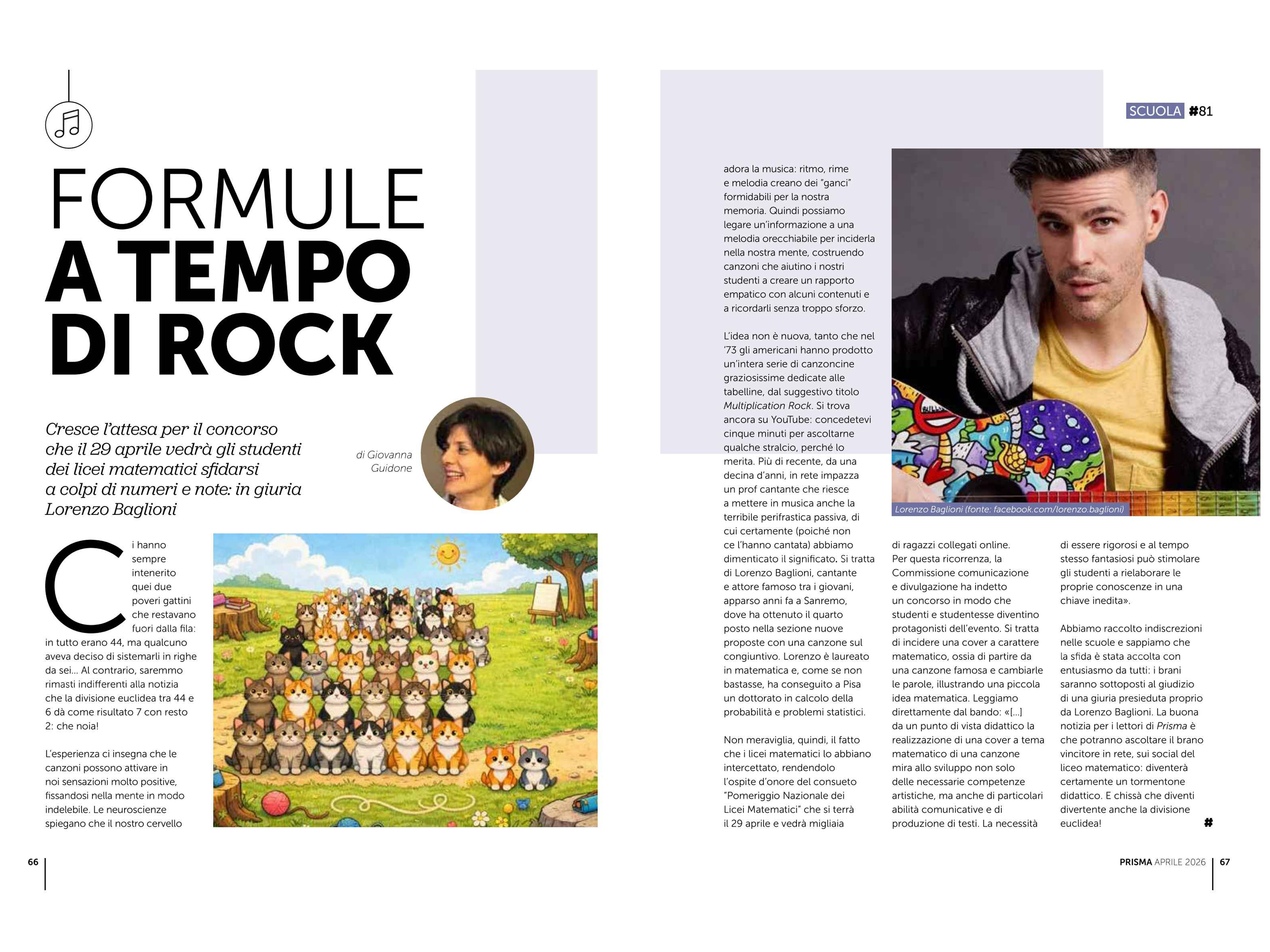 Avremo la partecipazione straordinaria, come Presidente della Giuria, del noto cantautore e comico Lorenzo Baglioni. Componenti della Giuria saranno anche i professori *Marco Bramanti* (PoliMi) e *Francesco Malaspina* (PoliTo).